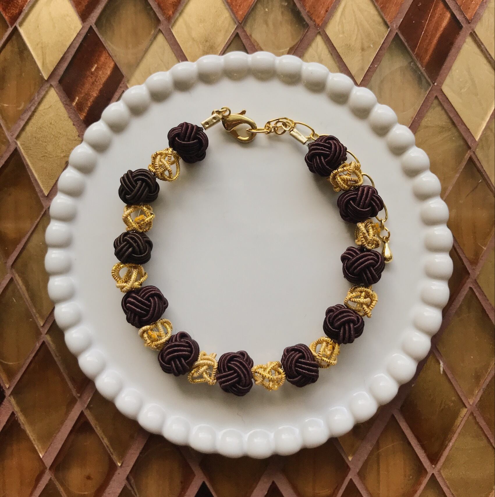 茶色とゴールドでつないだブレスレット